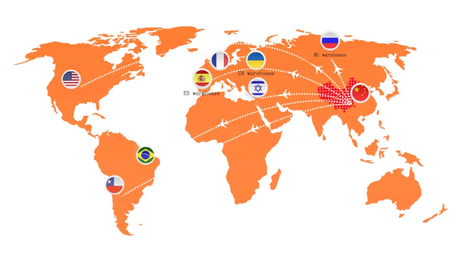 Podemos enviar los productos el mismo día ya que tenemos almacenes en el extranjero en varias regiones