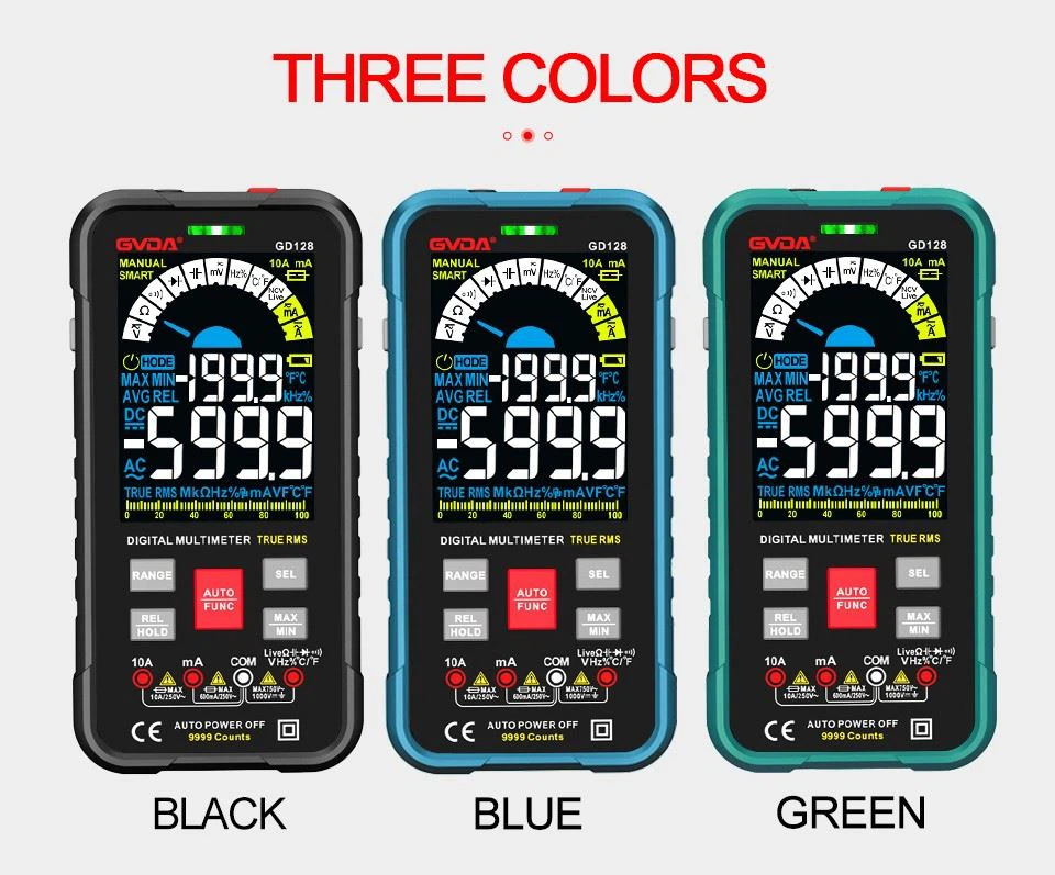 GVDA True RMS Multímetro digital 9999 Cuenta Color LCD DMM Voltímetro AC DC NCV Medidor de voltaje Amperímetro inteligente Smart Auto Range Capacitance Tester 1000V 10A